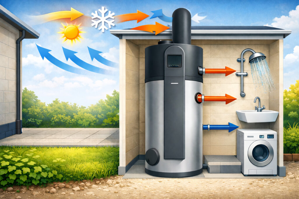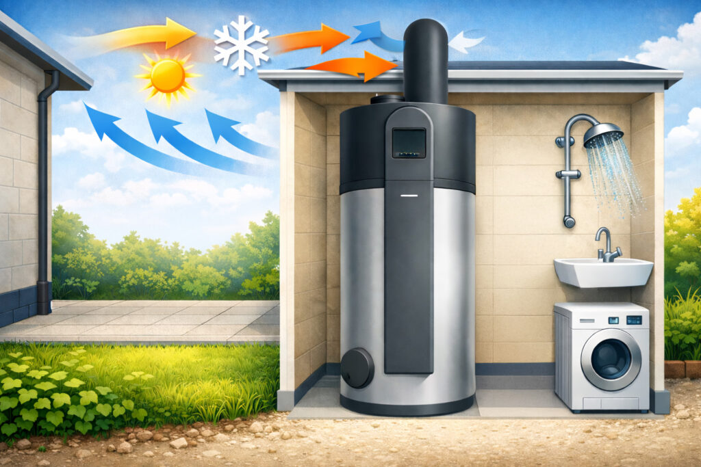Energieeffiziente Erwärmung von Trinkwasser für den häuslichen Einsatz und ist für Neubau-, Renovierungs- und Sanierungsprojekte konzipiert. Sie kombiniert die Nutzung von Umgebungsluft mit moderner Wärmepumpentechnologie, hoher Betriebssicherheit und umfangreichen Schutz- und Steuerungsfunktionen, ohne den Bedienkomfort zu beeinträchtigen. Die Anlage ist für eine fachgerechte Installation ausgelegt, unterstützt flexible Aufstell- und Anschlussvarianten und erfüllt alle relevanten Sicherheits-, Hygiene- und Effizienzanforderungen gemäß den technischen Vorgaben